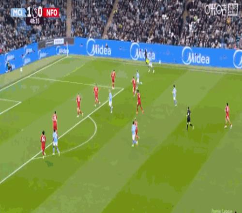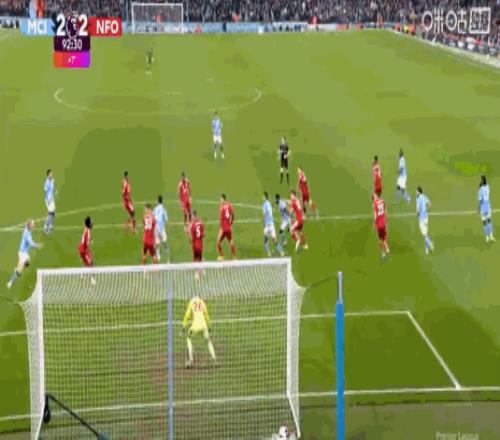 第23分鐘,福登遠(yuǎn)射,門將出現(xiàn)脫手