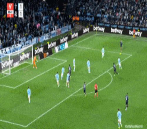 第94分鐘,塞爾塔解圍不遠(yuǎn),巴爾韋德外圍重炮轟門,皮球折射后飛入網(wǎng)窩。2比1,皇馬絕殺。