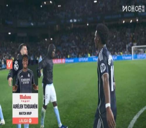 第11分鐘,皇馬戰(zhàn)術(shù)角球開出,居萊爾倒三角回敲,瓊阿梅尼推射彈柱入網(wǎng),1比0。這是瓊阿梅尼的聯(lián)賽首球,也是皇馬本場(chǎng)為數(shù)不多的亮點(diǎn)。