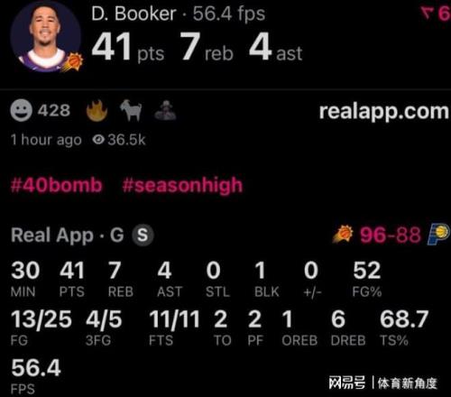 實(shí)際上,布克已經(jīng)有將近一年沒有單場砍下40+的得分了。他上一次拿到40+,還得追溯到2025年4月。