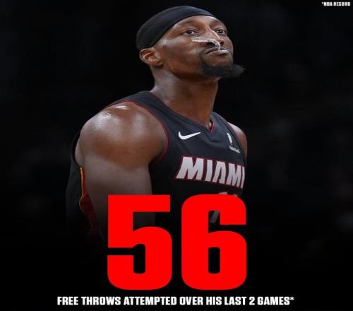 阿德巴約最后連罰12球,過(guò)去2場(chǎng)比賽罰球合計(jì)56罰,刷新了小喬丹創(chuàng)下的54罰紀(jì)錄。
