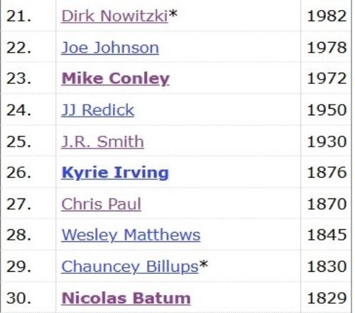 至此,巴圖姆生涯三分命中數(shù)追平比盧普斯,上升至NBA歷史第29位。