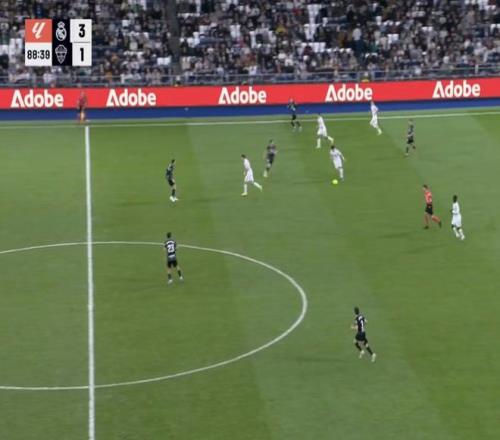 兩球領(lǐng)先后,比賽徹底開(kāi)放。阿貝洛亞開(kāi)始輪換主力,呂迪格、巴爾韋德、楚阿梅尼、維尼修斯等人陸續(xù)下場(chǎng),取而代之的是一群卡斯蒂亞(皇馬B隊(duì))提拔上來(lái)的年輕人。