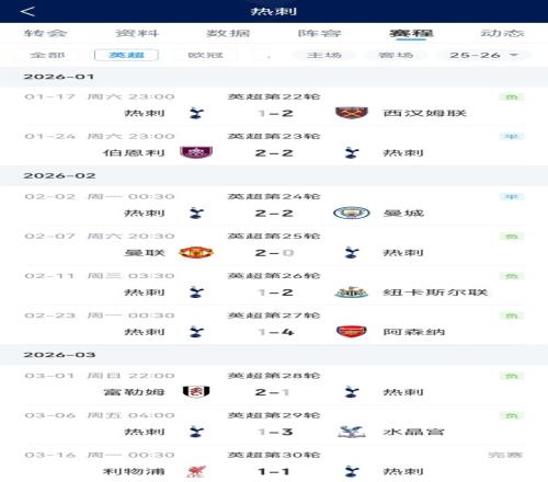 從1月17日起,熱刺在聯(lián)賽9場比賽收獲3平6負(fù),戰(zhàn)平的三場分別是伯恩利、曼城、利物浦。