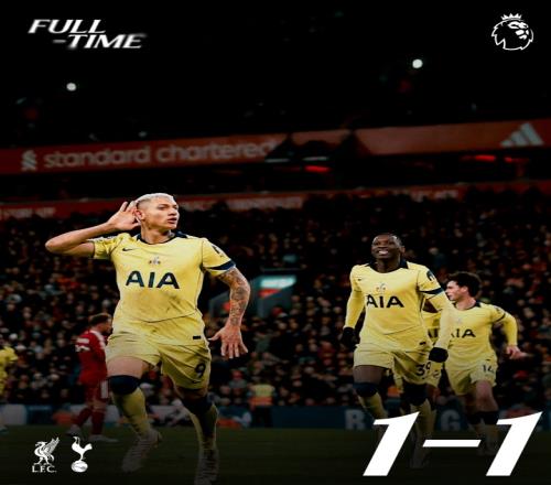 體育播報03月16日宣 本輪英超。熱刺在客場1-1絕平利物浦。