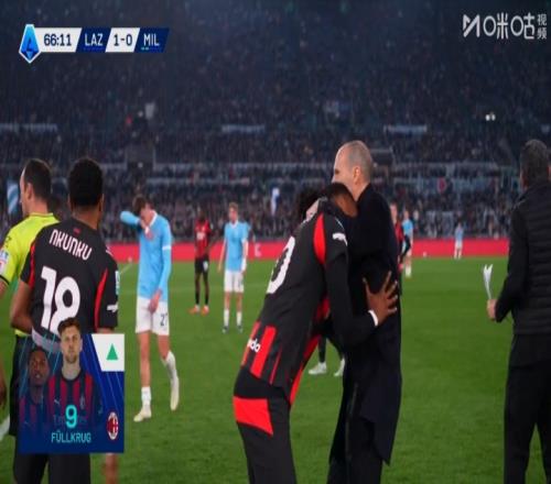 今天凌晨,AC米蘭在客場0-1不敵拉齊奧,比賽第66分鐘,阿萊格里決定用恩昆庫換下萊奧。