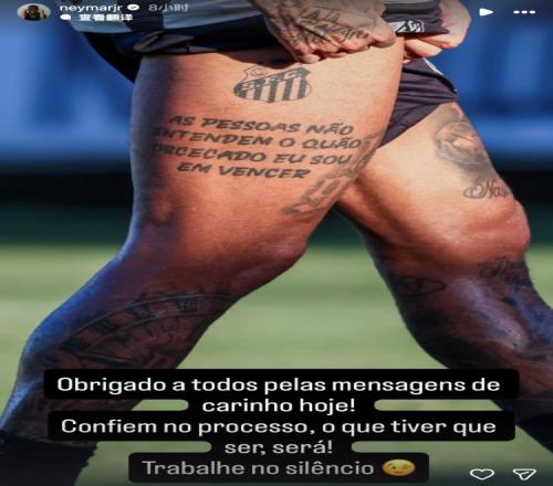 內馬爾社媒照出大腿的紋身照,大腿上的文字紋著:“人們不明白我有多么執(zhí)著于勝利”。社媒圖片中寫道:“今天感謝大家發(fā)來的暖心信息!相信過程,該來的總會來!默默努力