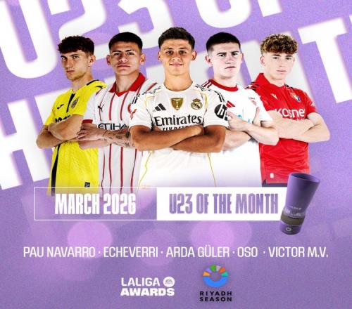 西甲3月最佳U23球員候選:居萊爾、埃切維里等5名球員獲提名