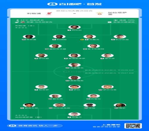 利物浦vs加拉塔薩雷首發(fā):薩拉赫、?;倏顺鰬?zhàn),加克波替補
