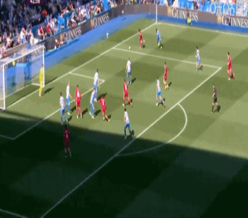 第14分鐘,維爾貝克力壓科納特頭球破門,利物浦0-1落后布萊頓!