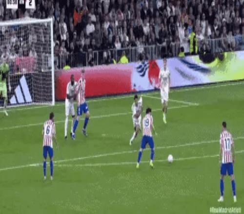 三分鐘后,皇馬反超比分:巴爾韋德速度極快,一個快速上搶,然后右腳外腳背的搓射,進球非常精彩。2-1!