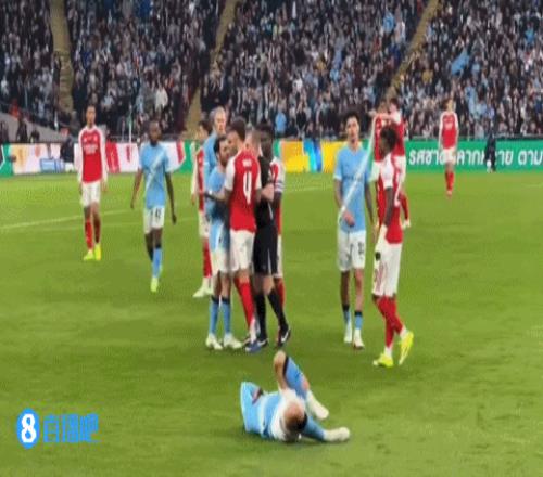 比賽第68分鐘曼城已經(jīng)2-0領(lǐng)先,謝爾基在得到球后悠閑地顛了兩下球,隨后被本·懷特放倒在地,主裁判向本·懷特出示黃牌。