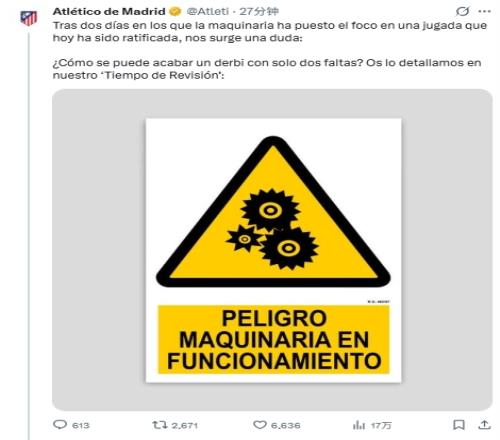 馬競在開篇推文中就拋出核心疑問:“在過去兩天里,這臺(tái)‘機(jī)器’(暗指裁判/西甲官方)將焦點(diǎn)對(duì)準(zhǔn)了如今已被證實(shí)的一次比賽動(dòng)作,我們不禁生出一個(gè)疑問: