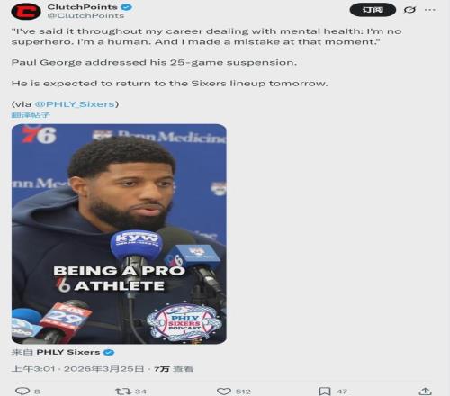 禁賽25場(chǎng)!喬治宣布復(fù)出!4年2.12億徹底砸手里