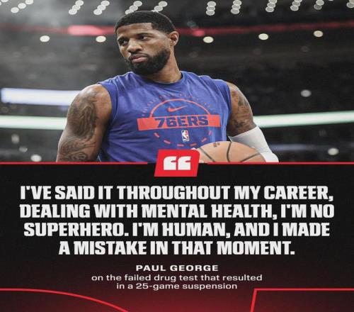 今年2月1日,NBA官方宣布,喬治因違反聯(lián)盟禁藥政策,被聯(lián)盟禁賽25場(chǎng)。當(dāng)時(shí)喬治表示,為了治療心理健康,自己誤服了聯(lián)盟違規(guī)的藥物。今天喬治再次回應(yīng):“我不是超級(jí)英雄,我只是個(gè)普通人。而那一刻,我犯了個(gè)錯(cuò)誤?!?/p>