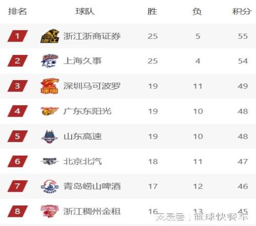 附:CBA積分榜最新排名