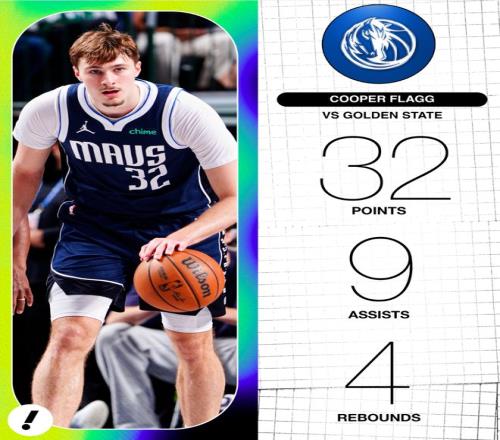 弗拉格在對陣勇士一戰(zhàn),41分鐘,19中12,三分4中2,罰球6中6,拿到32分9助攻4籃板2搶斷,命中率63.2%,三分命中率50%,罰球命中率100%,真實命中率73.9%。弗拉格新秀賽季已經(jīng)拿到第八次30+。