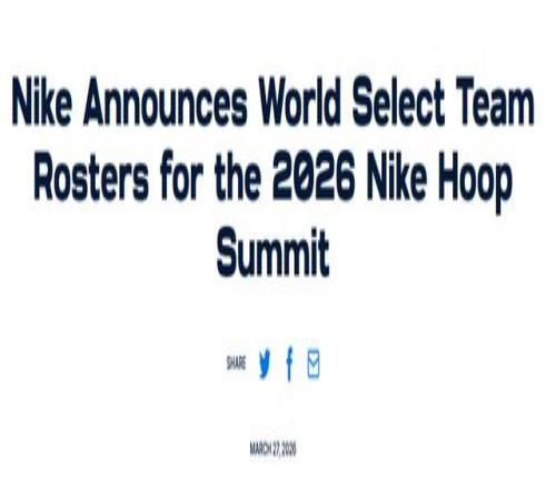 北京時(shí)間3月27日,耐克籃球正式公布了2026年耐克籃球峰會(huì)國(guó)際隊(duì)陣容。在第27屆耐克籃球峰會(huì)上,全球頂尖青年籃球人才將與美國(guó)本土最強(qiáng)新星正面交鋒。賽事將于北京時(shí)間4月12日在俄勒岡州波特蘭的摩達(dá)中心舉行。即將加盟普渡大學(xué)的中國(guó)球員郇斯楠入選國(guó)際隊(duì)。