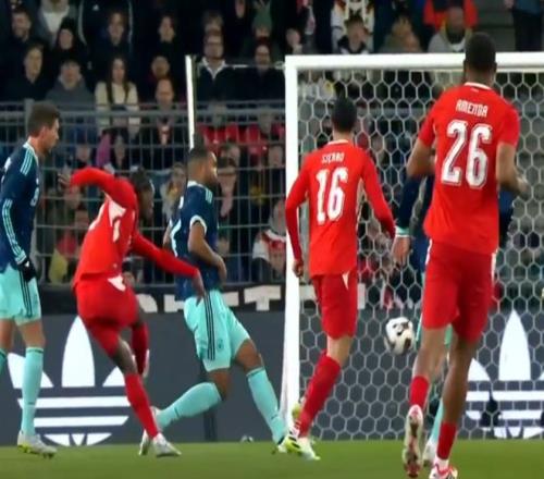 比賽開始不久,哈弗茨就獲得了非常好的機(jī)會,他近距離鏟射,結(jié)果門將把球擋了出去。第17分鐘,瑞士進(jìn)球了!恩多耶在禁區(qū)左側(cè)強(qiáng)行晃開角度,小角度勁射,皮球應(yīng)聲入網(wǎng)!3分鐘后,格雷茨卡禁區(qū)內(nèi)倒地射門,踢高了。第27分鐘,德國隊扳平比分!維爾茨在左側(cè)起球傳中,約納坦-塔后點(diǎn)包抄,頭球頂進(jìn)。