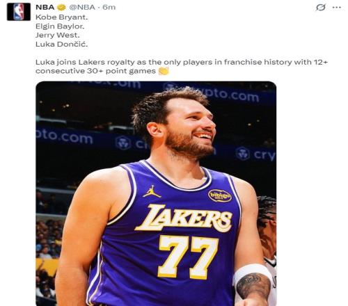 東契奇又狂轟41分8籃板,他連續(xù)12場比賽30+并肩科比、貝勒、韋斯特三位湖人隊史超巨,湖人也迎來了一波二連勝。這場比賽雷迪克是10人輪換,勒布朗的大兒子布朗尼獲得了4分26秒的登場時間。
