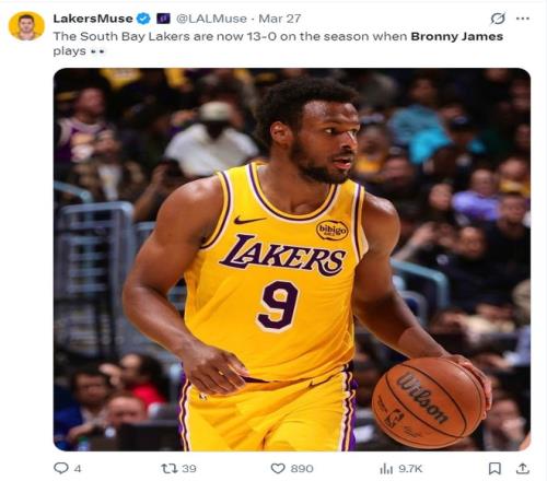 3月27日,布朗尼代表南灣湖人出戰(zhàn)第13場,最終南灣湖人137-114狂勝蘇福爾斯天空力量隊,這場比賽布朗尼27分鐘,7中4,三分3中1,拿到9分5籃板3助攻1搶斷,還完成了持球滑翔劈扣。