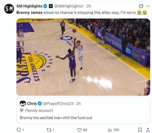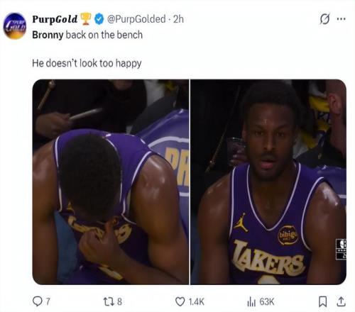 湖媒PurpGold寫道:布朗尼又被換下了,他似乎有些不開心啊。(的確他剛剛命中三分防守端也沒有失位,就這樣被換下令人費解,直播間的孫悅都表達了不滿)