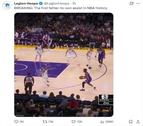 這場比賽勒布朗與布朗尼完成了NBA歷史首次父子助攻,勒布朗遭遇包夾后分球45度的布朗尼,最終布朗尼外線三分命中??墒沁@個三分球命中后布朗尼就被雷迪克換下了。