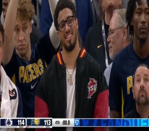 ——步行者發(fā)球直接把球扔進(jìn)了籃筐違例,把哈利伯頓都看笑了