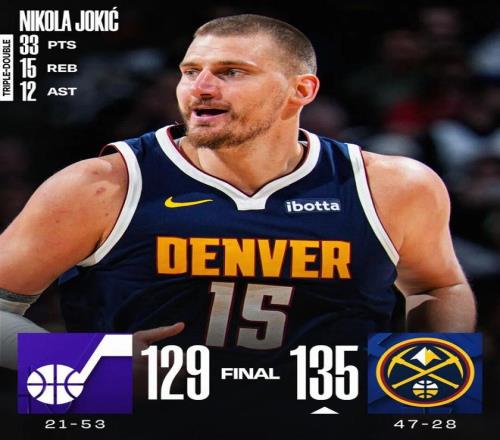 常規(guī)賽,掘金主場135-129戰(zhàn)勝爵士。