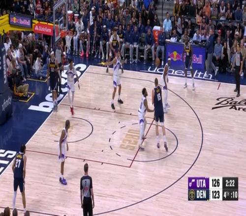 最后的3分鐘時間,掘金打了爵士一波14-3,直接把比賽給收了,約基奇在這波進攻小高潮里拿了2分3助攻,且每一波進攻都與他直接相關。