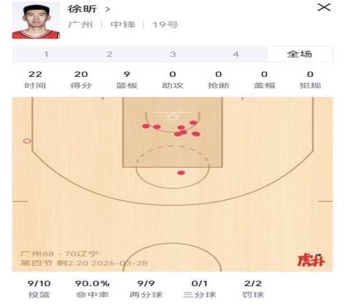 10投9中轟20分!徐昕碾壓遼籃,攻守兼?zhèn)浯蚰樁配h,廣東后悔嗎