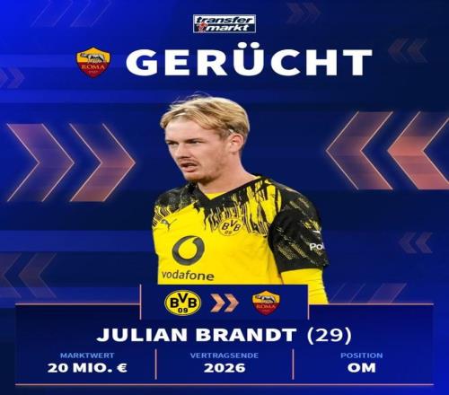 29布蘭特與多特蒙德的合同將在今夏到期,而球員本人已經(jīng)確認(rèn)不會續(xù)約。這意味著,這位在德甲征戰(zhàn)多年的攻擊手,將以自由身進(jìn)入轉(zhuǎn)會市場。在如今動輒上億轉(zhuǎn)會費的時代,一名擁有國家隊履歷、歐冠經(jīng)驗且仍處當(dāng)打之年的攻擊型中場可以零成本簽下,這樣的機(jī)會本就極為罕見。