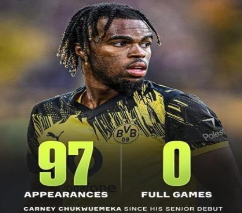 回顧丘庫(kù)埃梅卡的職業(yè)生涯,到目前為止有一個(gè)詭異的數(shù)據(jù),困擾著這位新晉奧地利國(guó)腳。那就是丘庫(kù)埃梅卡出戰(zhàn)97場(chǎng)正式比賽,居然到現(xiàn)在還是尷尬的0次踢滿全場(chǎng)。這是一個(gè)極其罕見的數(shù)據(jù),無(wú)論首發(fā)還是替補(bǔ),無(wú)論比賽是領(lǐng)先還是落后,無(wú)論教練是圖赫爾、波切蒂諾還是如今多特蒙德的教練組,他似乎總會(huì)在終場(chǎng)哨響前離開球場(chǎng)。