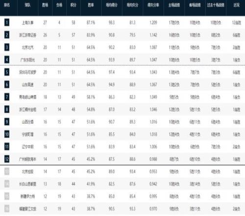 CBA最新排名出爐!北京殺進前三,遼寧跌入谷底,黑馬逼停廣東