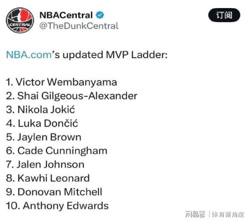 本賽季截至目前,約基奇已經(jīng)出戰(zhàn)59場比賽,場均能夠轟下27.9分、12.8個籃板以及10.8次助攻,投籃命中率高達57.4%,三分命中率也有38.5%。值得一提的是,NBA官方公布的最新MVP排行榜中,文班亞馬強勢登頂,亞歷山大排名下滑至第二,約基奇則穩(wěn)隨其后,東契奇位列第四。