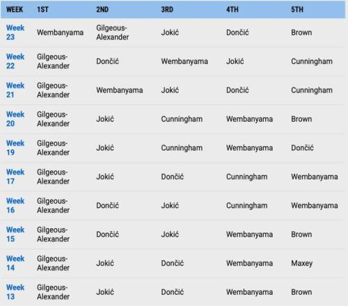 不過雷霆本賽季在常規(guī)賽階段多次輸給馬刺,現(xiàn)如今在個人獎項方面,亞歷山大也被文班亞馬反超了。