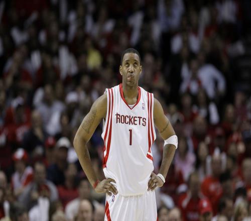 季后賽首輪,火箭2-4不敵爵士,麥迪場(chǎng)均27分8.2籃板6.8助攻。