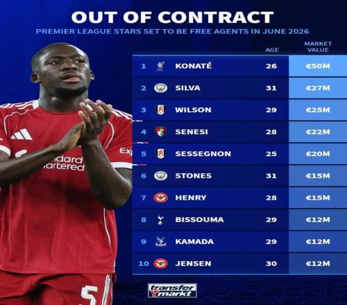英超合同6月到期球員身價榜:科納特5000萬歐元第1,B席上榜