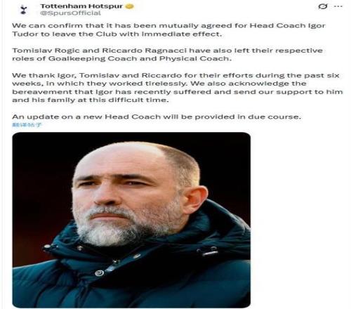 英超賽季進入最殘酷的沖刺階段,北倫敦卻突然爆出重磅消息,托特納姆熱刺正式宣布與主帥伊戈爾·圖多爾提前解約,隨著他下課,助理教練羅吉奇和體能教練拉尼亞奇也一同離隊。這位克羅地亞教頭的執(zhí)教周期定格在短短44天,5場英超奪1分,歐冠出局;成為近年來英超最“短命”的主教練之一。