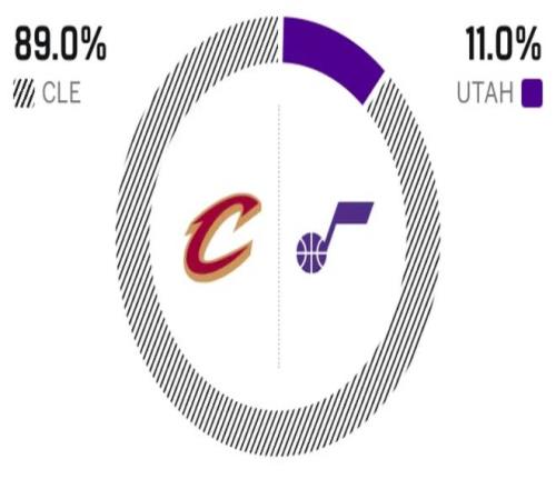 賽前,美媒ESPN對(duì)本場(chǎng)比賽進(jìn)行了預(yù)測(cè),爵士勝率僅有可憐的11.0% ,騎士勝率高達(dá)89.0% ,優(yōu)勢(shì)明顯。