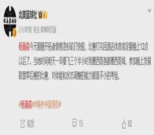 由于前一天楊瀚森還在跟隨開(kāi)拓者客場(chǎng)對(duì)陣快船,然后才從洛杉磯飛往墨西哥,舟車勞頓外加高原反應(yīng)明顯看出他在PK墨西哥城隊(duì)長(zhǎng)比賽中身體狀況不佳容易疲勞,導(dǎo)致其上半場(chǎng)出戰(zhàn)時(shí)間被切得零碎,約15分鐘里投籃4中2得到4分3板1助1帽。