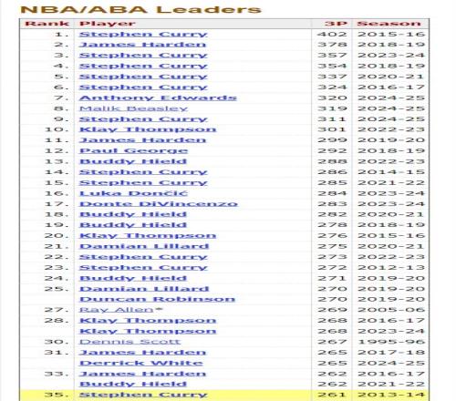4.克努佩爾單賽季261個三分已經(jīng)追平13-14賽季庫里排在歷史第35位,他有希望沖擊歷史前20榜單;