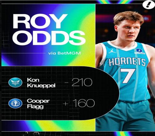 最新一期的官方最佳新秀榜克努佩爾還是蟬聯(lián)第一,他的ROY賠率-210也斷崖領(lǐng)跑,弗拉格排第二+160,這個差距是非常之大的。