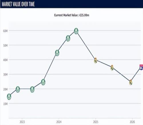 恩德里克:14場6球5助,身價(jià)回升至3500萬