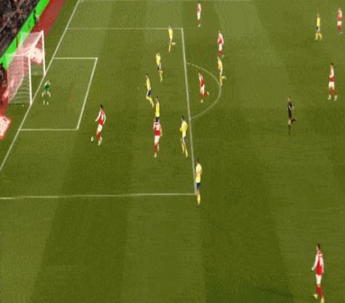第68分鐘,加布里埃爾帶球推進(jìn)送出直塞,哈弗茨跟進(jìn)回做,替補(bǔ)登場(chǎng)的哲凱賴什包抄破門(mén),阿森納1-1扳平。