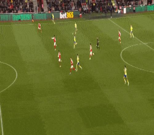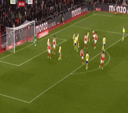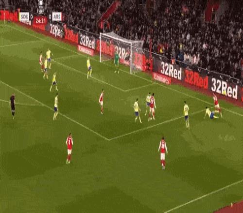 第35分鐘,南安普頓后場(chǎng)反擊,布里送出傳中,禁區(qū)內(nèi)本懷特冒頂失誤送禮,斯圖亞特笑納大禮破門(mén),阿森納0-1落后。