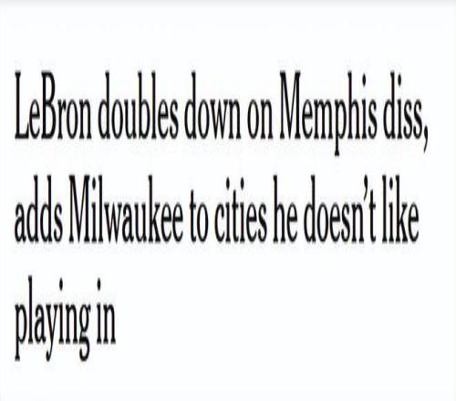 “隨便一個(gè)周二在密爾沃基,”詹姆斯在節(jié)目中說(shuō)道,“41歲了還要住在該死的凱悅酒店。你覺(jué)得我想干這事兒?隨便一個(gè)周四在孟菲斯?我又不是NBA里第一個(gè)這么說(shuō)的人。我們都覺(jué)得,‘你們?cè)摪岬胤搅?,搬到納什維爾去。’那兒有范德堡大學(xué),有納斯卡賽車(chē),有球館,他們不也有一支冰球隊(duì)嗎?”