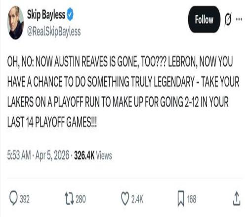5年2.4億要泡湯,里夫斯常規(guī)賽報(bào)銷!湖人三巨頭秒變41歲老詹單核