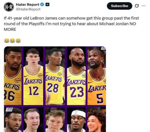 美媒HaterReport為詹姆斯造勢到:“如果41歲的詹姆斯帶領(lǐng)這樣一支湖人闖過季后賽首輪,我就再也不想聽到他和喬丹的任何討論了!”