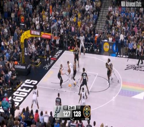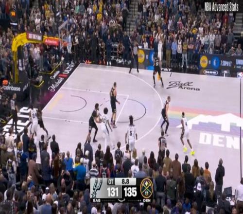 第四節(jié)剩下20秒前,馬刺124-122領(lǐng)先掘金2分,隨后的三個(gè)回合: